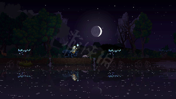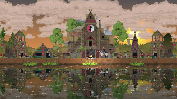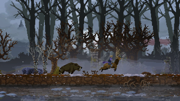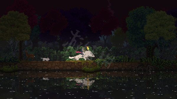 可能有部分玩家对游戏的第一印象算不上有多好,即便是放在像素游戏当中比较,《王国:两位君主》中的角色形象和场景建筑只能只能称得上粗糙,缺乏辨识度,很难让玩家上来就对这个骑着马的糟老头产生“这是主角”的认同感。但当游戏画面开始运动时,便能直观地看到游戏在动态效果上的过人表达,卷轴式画面流动得十分顺畅,树丛随风摇曳,雄鹿从中跃出,波光粼粼的湖面上倒映着光与影,由近及远的透视关系给了玩家“遥远”的视觉感受,更像是活起来的一幅画中世界。