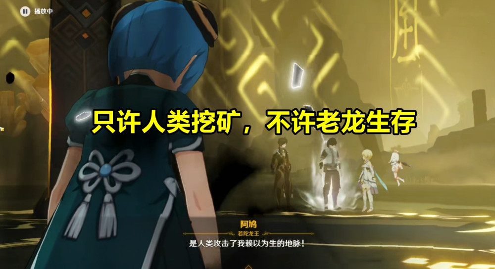 若陀龙王想挣脱封印,一行四人却不管不顾化身“正义使者”,冲上去就对年迈的老龙王一顿“招呼”。最终,年迈的老龙王不敌“正义”的铁拳再度被封印,这时候我们才知道事情的真相,原来若陀龙王当年也是追随帝君守护璃月的功臣之一,后来璃月人过度开矿,破坏地质环境,若陀龙王告诉他们应该“保护环境”,结果不仅没人听,还被他们拉过来的“大人物”一顿胖揍并被封印……