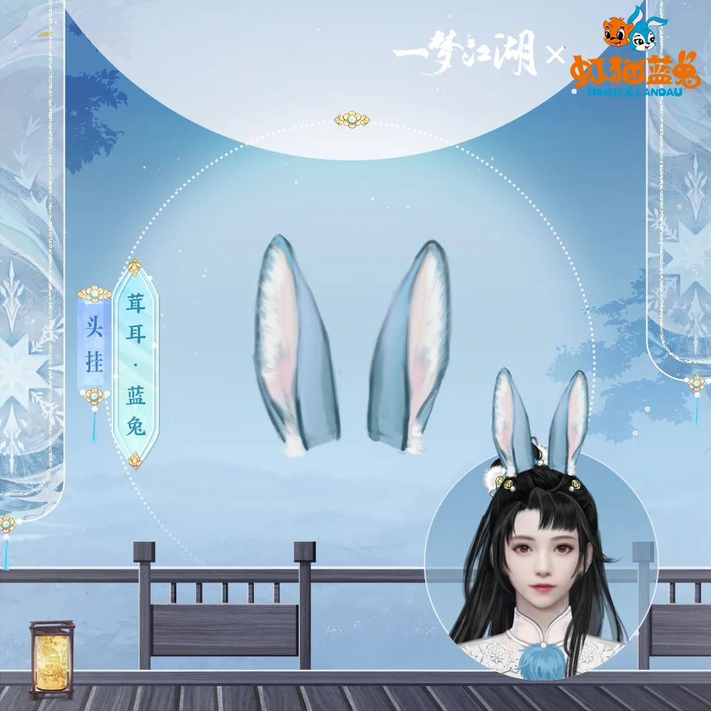 头挂·茸耳·蓝兔作为一款冰蓝色的兔耳头挂,不仅天真无邪,可爱万分,还延续了蓝兔侠骨柔情、冰雪聪明的特点。蓝兔头挂同样不分男女款式,但以临危不乱、冰雪聪明的蓝兔为榜样的少侠除了蓝兔款时装和发型,又怎么少得了还原度超高的耳朵呢?换上全套蓝兔款联动外观,来江湖寻找志同道合,能与你一同仗剑天下的虹猫少侠吧!