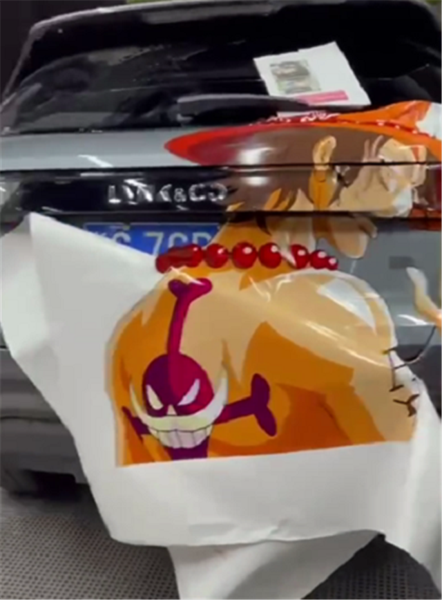前言:很多人对于《海贼王》中的这个“艾斯”角色非常喜欢,于是有的贴膜店就会推出动漫人物的版画,或者是车身尾灯贴膜,从而满足这一部分人的需求,比如这台领克01。