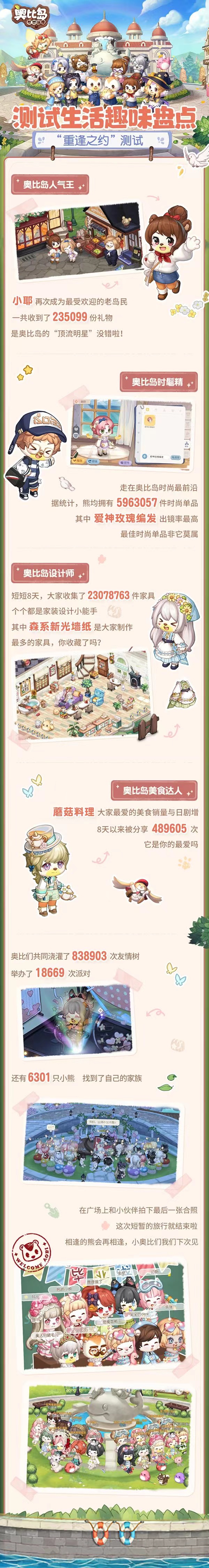 这些天,我们在奥比岛收获天南地北的好友,自由装扮属于自己的小木屋及海岛,体验各式各样有趣的小游戏,跟各位NPC们进行互动,建立起牢固的友谊,一起经历种种故事,这些美好的回忆都会成为再次我们相遇的羁绊,相逢的熊会再相逢!一起许下约定,公测不见不散!
