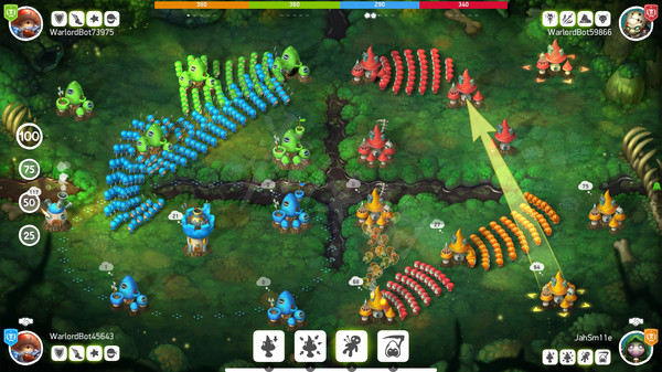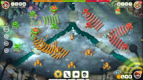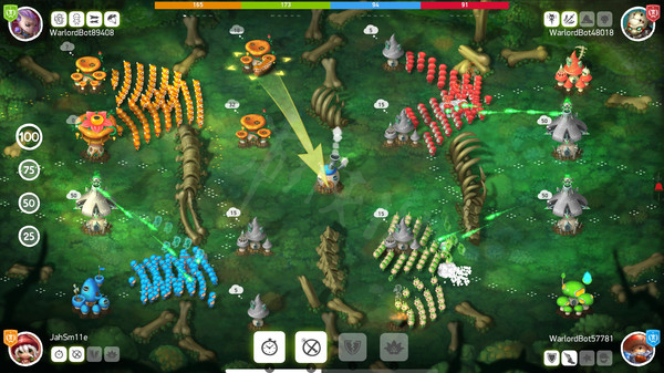 不难发现,《蘑菇战争2》符合RTS游戏的一切特质,包括即时性,宏观指挥,基地建设,资源生产,科技研发,胜利目标等等,尽管游戏十分小巧,但这些内容都是一个不少的,称得上是真正的“麻雀虽小,五脏俱全”。游戏在最大程度上简化了RTS游戏中繁复的操作,玩家只需对部队下达指令,部队便会自行去寻路,执行,更有一种作为幕后指挥官而非前线将军的感觉,当然了,为了突出战略性,游戏的规则也没有那么简单,下面我们就先来了解了解这款游戏是怎么玩的吧。