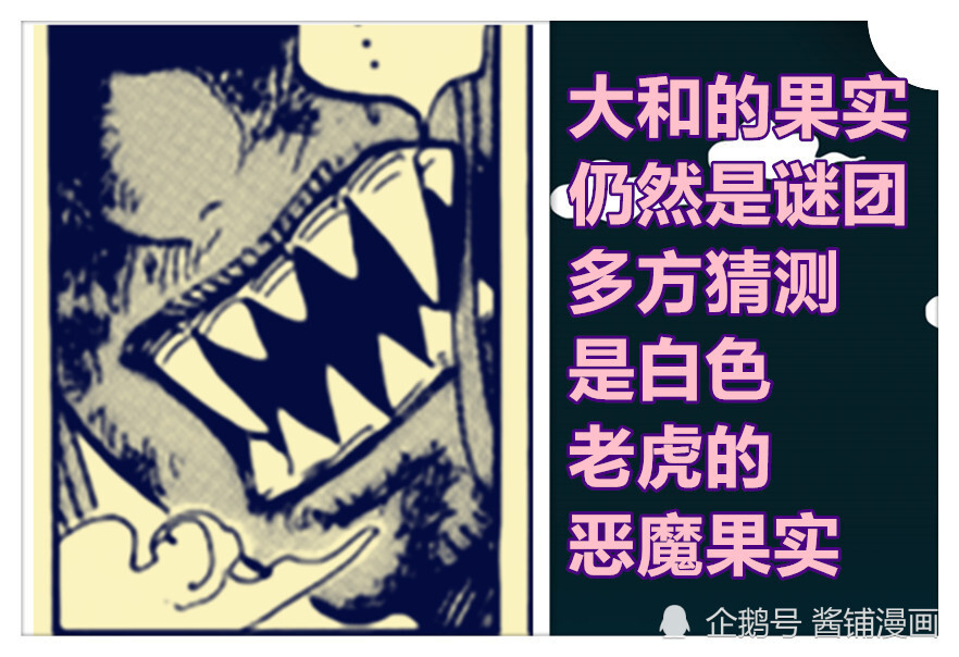 第三,大和的恶魔果实形态,拥有一口猫科动物的獠牙。大和一直被猜测,是白色的老虎。凯多已经被设定为青色的巨龙,这寓意他们父女两人,是真正的龙虎斗对手。按照1012话漫画标题《痒》,点明了大和目前的心态已经跃跃欲试,手痒找个借口离开桃之助,趁着凯多还没被路飞击败,也去挑战父亲凯多一下。