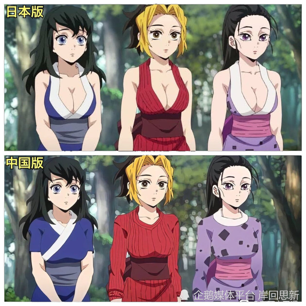 由于B站特供版远扬海内外,近日,有网友模仿这种特色制作《鬼灭之刃》对比图,以此嘲讽我们国内正版与原版新番的差距——居然严格到音柱的老婆需要穿上毛衣,而且许多网友都相信了,实际上,没必要浪费时间制作长袖,而B站版本也只是针对重点地方P图,包括运动达人堕姬,如果按照网友制作的标准,堕姬更需要穿毛衣,但我们并没有看到穿毛衣的堕姬出现。