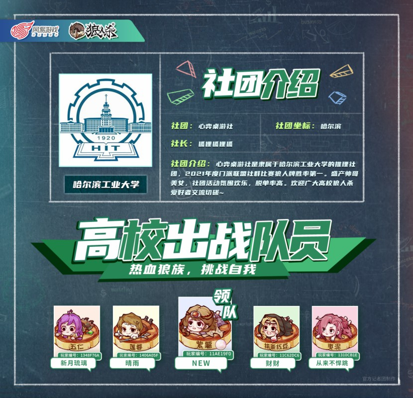 在众多入围本次狼人杀高校社团联赛的高校中,不乏一些知名院校,更有实力选手隐藏其中。来自哈尔滨工业大学的心弈桌游社曾在去年门派联盟社群比赛中拿下胜率第一的好成绩,本次出战不知道又会有怎样的表现呢?除此之外还有广东理工学院、湖南理工学院等多所高校社团参赛。