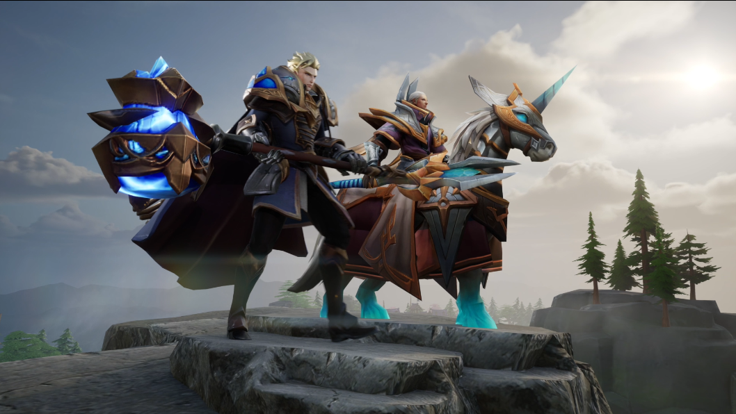 精炼而制的铠甲,头顶犄角的白马,武器还附着强大的神秘魔法,站在日光下的他们是睿智帝国法师法师与无畏战士。