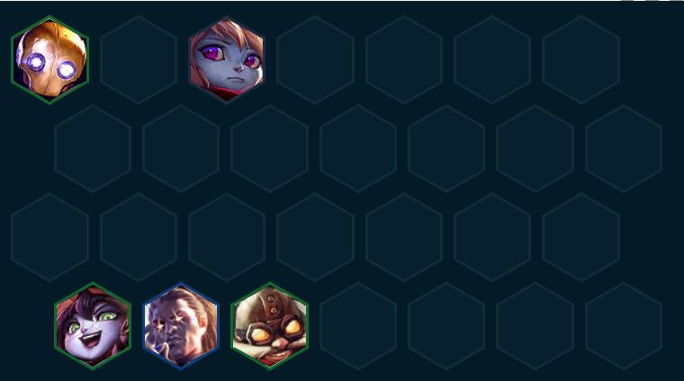 前期过渡运营节奏是上八搜卡,2-1上四,2-5拉五,开局3约2枪打前期连胜,。有极客加废品厂也可以直接4极客体系打工,选秀优先找救赎,然后再考虑莫甘娜的肉装。