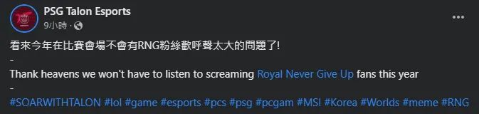 今年MSI的时候,PSG再次提及“窃听事件”,这难道是越缺少什么,越想证明什么吗?而且由于RNG是线上赛,不能抵达赛场,PSG又说出了“今年会场不会有RNG粉丝的欢呼声太大的问题了”之类带着嘲讽的话了。