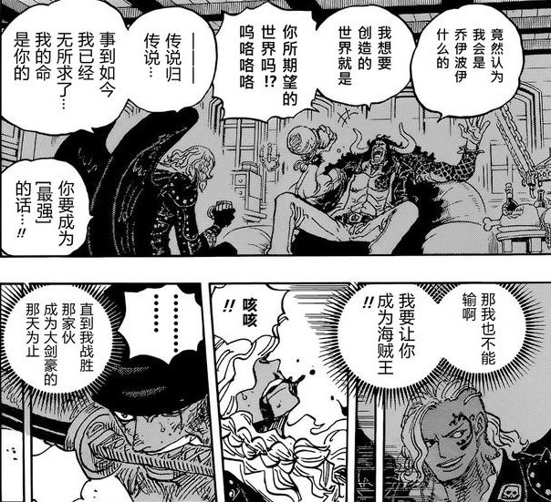 路飞还说了一句话:我会创造一个我的朋友们不会挨饿的世界。这句话的格式有点眼熟,有个叫宇智波带土的家伙,应该也说过类似的话。而且这不像是路飞的风格,在鱼人岛的时候,路飞还说自己不想当英雄,只想吃肉,如今他的思想,却越来越向英雄靠拢了。