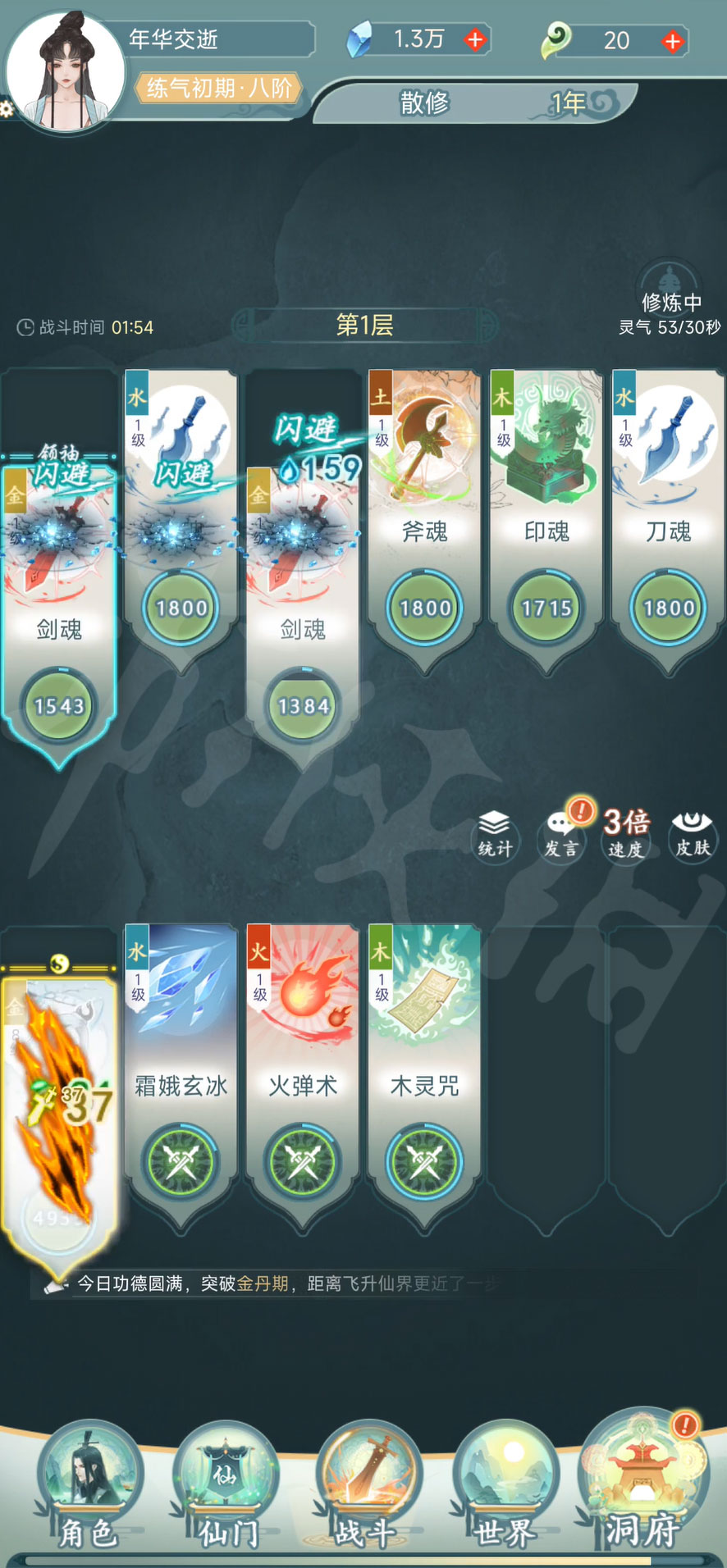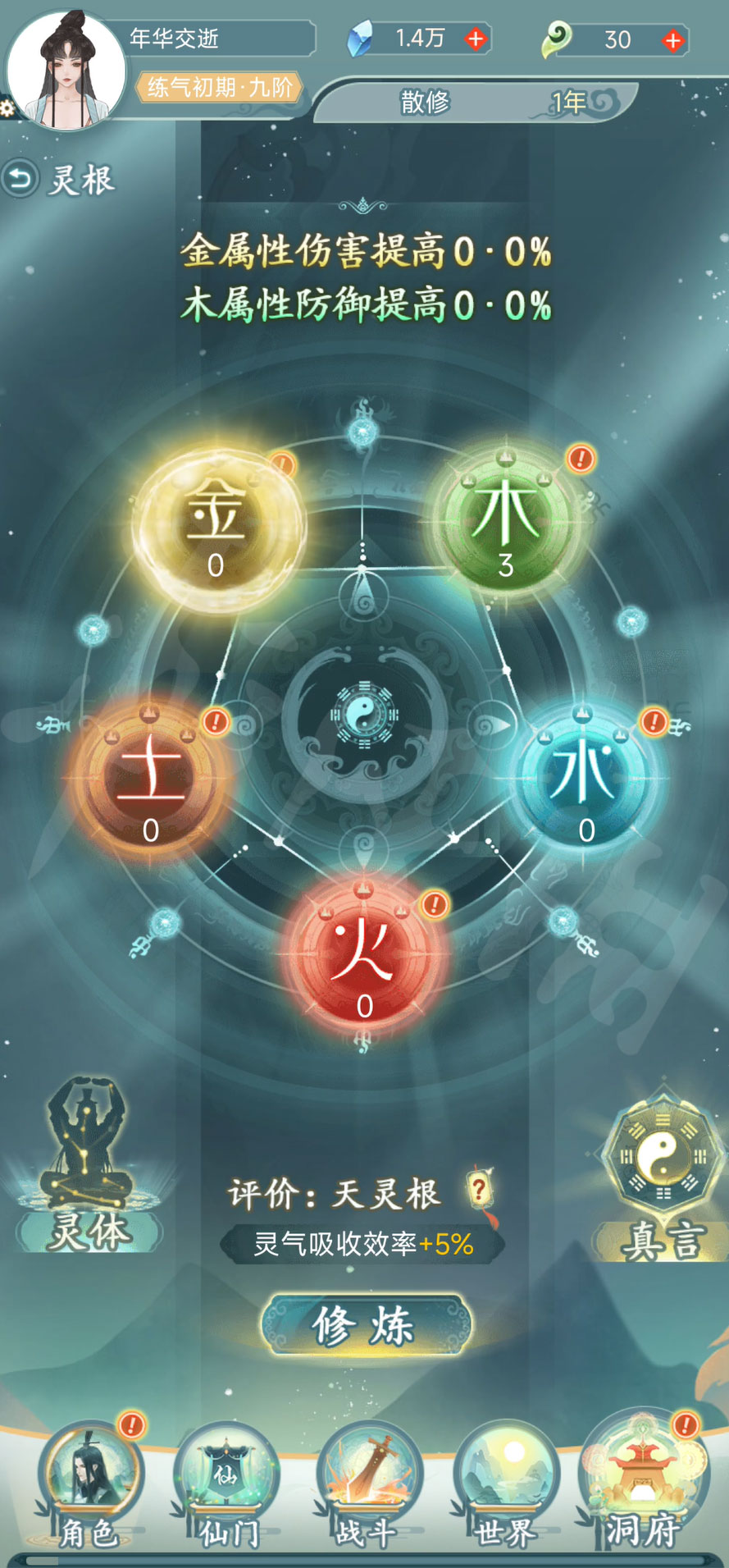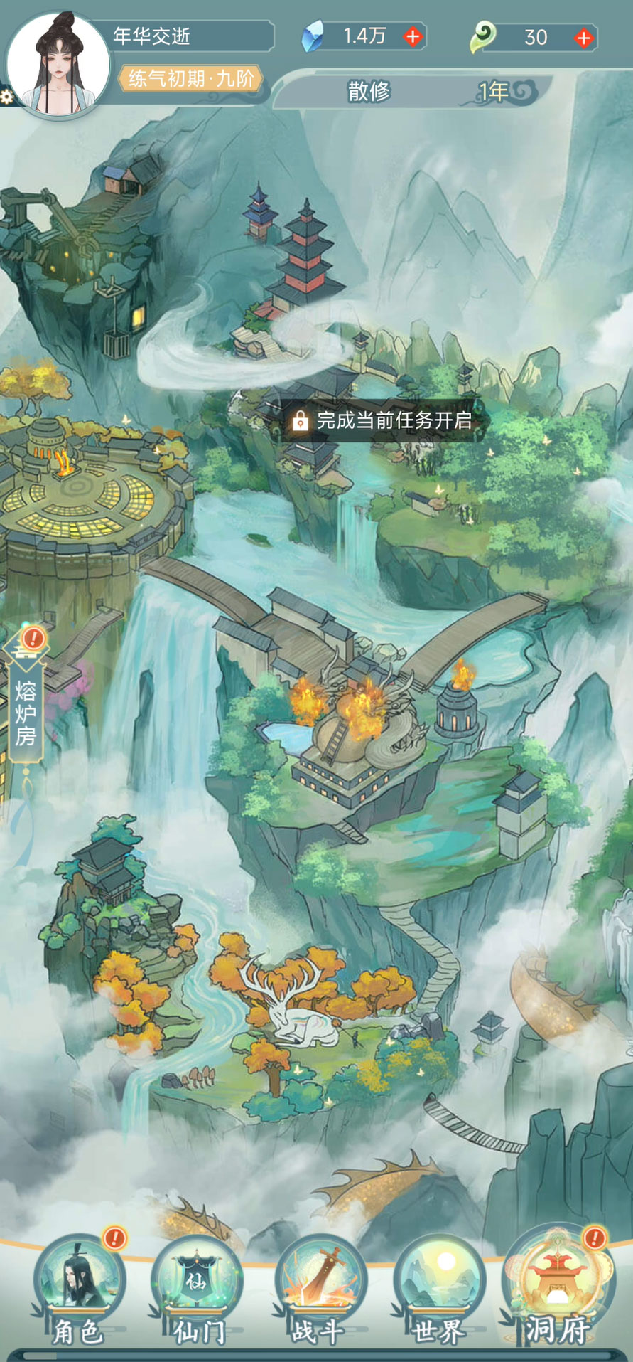 游戏中共有五个功能入口,分别是:角色,仙门,战斗,世界,洞府,官方所言是我们以适当的方式揉合了【新国风、修仙题材、放置挂机、策略搭配,休闲养成,仙门争斗、渡劫成仙】等等有趣的修仙小说或游戏内常见的套路,实际这些入口对应的还是刷战力和dps检测,不同的功能入口只是对应不同的战力体系罢了,玩法实际都是单纯的dps检测。