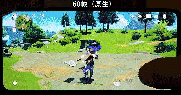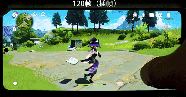 前面说到,iQOO Neo5还拥有一颗独立显示芯片。在体验另一款热门手游《原神》时,其插帧功能同样给笔者留下了深刻的印象。如下动图所示,《原神》的原生帧率为60帧,而在iQOO Neo5的独立显示芯片加持下,用户可以在该机上体验到120Hz的《原神》。2倍帧率的提升,带来了更直观的画面稳定性、流畅度的升级。此外,该机的插帧功能目前已经适配了《崩坏3》、《天谕》、《天涯明月刀》、《完美世界》、《第五人格》、《和平精英》、《原神》、《使命召唤》等多款主流游戏。