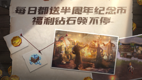 每日登录就送半周年庆典币,用庆典币直接兑换限定装扮与道具,钻石金币拿不停,官方这波属实撒币了!