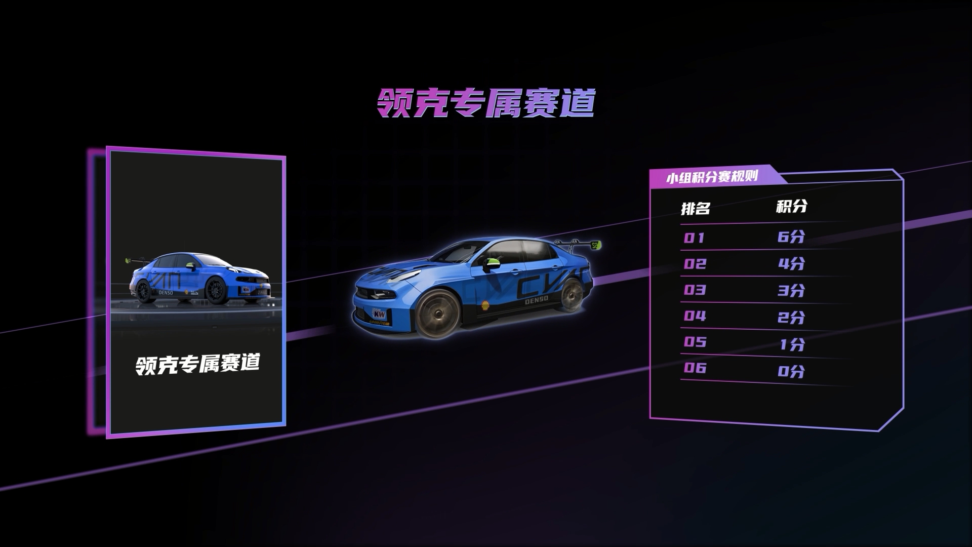领克赛道是车神杯S8的专属赛道,与常规的个人赛及团队赛独立并行,拥有截然不同的赛事玩法与前所未有的豪华赛事奖励。在这全新赛道里,玩家将指定使用领克03 TCR赛车,在不使用大招的情况下通过自身操作进行最纯粹最热血的竞速比赛,并全程采用积分制。