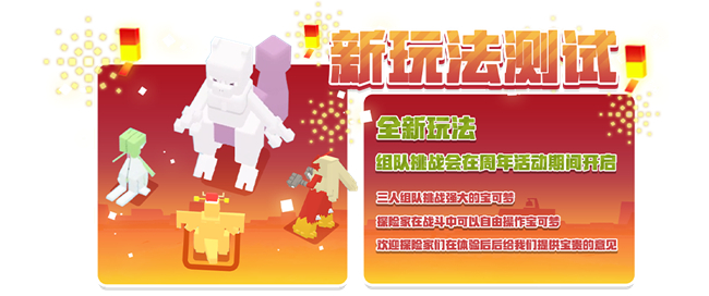 周年活动期间,新玩法“组队挑战”开启测试,探险家们在完成主线关卡3-弯弯河流即可解锁新玩法!