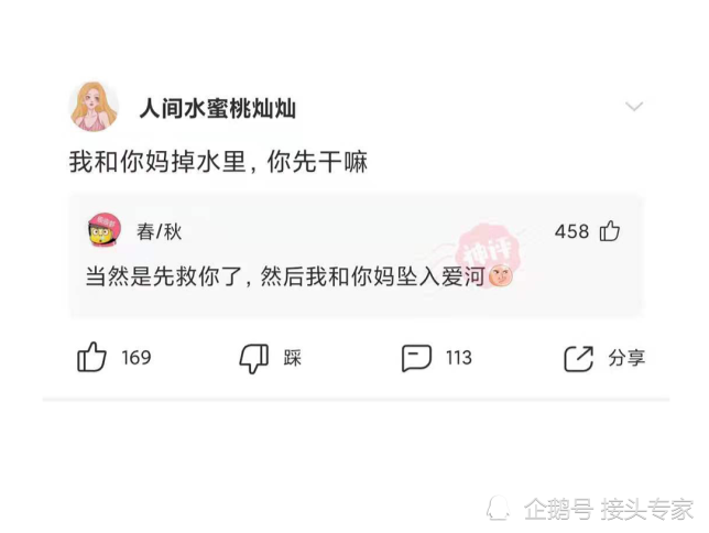 【沙雕问题9】:我和你妈掉水里,你先干嘛?