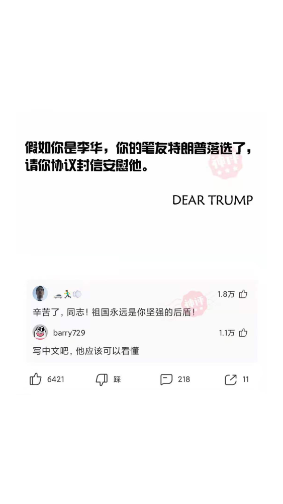 【沙雕问题11】:你的笔友川建国落选了,请你协议封信安慰他。