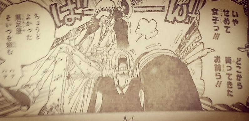 在海贼王1012话中, 索隆和山治之间的互动颇为有趣。罗这个医生不怎么尽责,他将受了重伤的索隆直接丢给山治,自己则是快速离开,这也让很多人都忍不住吐槽:你不是一个医生吗?据罗所说,索隆体内大约有20~30块骨头都断了,然而罗并未给索隆做出过多的治疗行为,一切都要凭借索隆的造化?尽管罗的行为显得没有医德,然而,索隆是不会这么容易就死掉的,索隆的伤势并不致命,况且还有山治在场。
