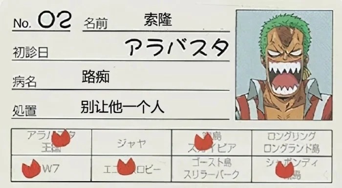 索隆是草帽团的最强剑客,身为路飞的左膀右臂他的实力也是和路飞不相上下,而强大的索隆这次得的病就是路痴癌,这个病相比较于路飞其实还是比较好治愈的,在索隆一个人行走的时候大家给他指点一下方向就可以啦。