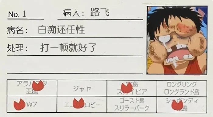 路飞是海贼王中的主角也是草帽团的船长,而他这次患得病就是白痴癌,做为一名病入膏肓的病人,路飞这辈子是无药可救,而能治疗路飞病症的解药就是需要暴打一顿,因此娜美就是路飞最好的解药。