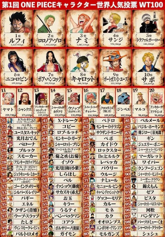 这次投票面向全世界的粉丝,不同国家的粉丝对于《海贼王》角色都有着各自的偏好,综合看起来也是非常有趣的。