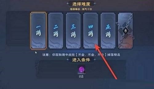 然后,寻找到秘境之后进入到四阶关卡。