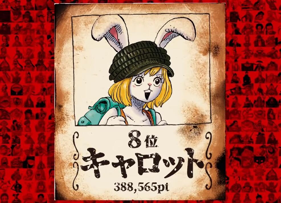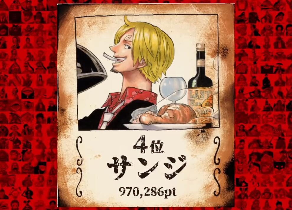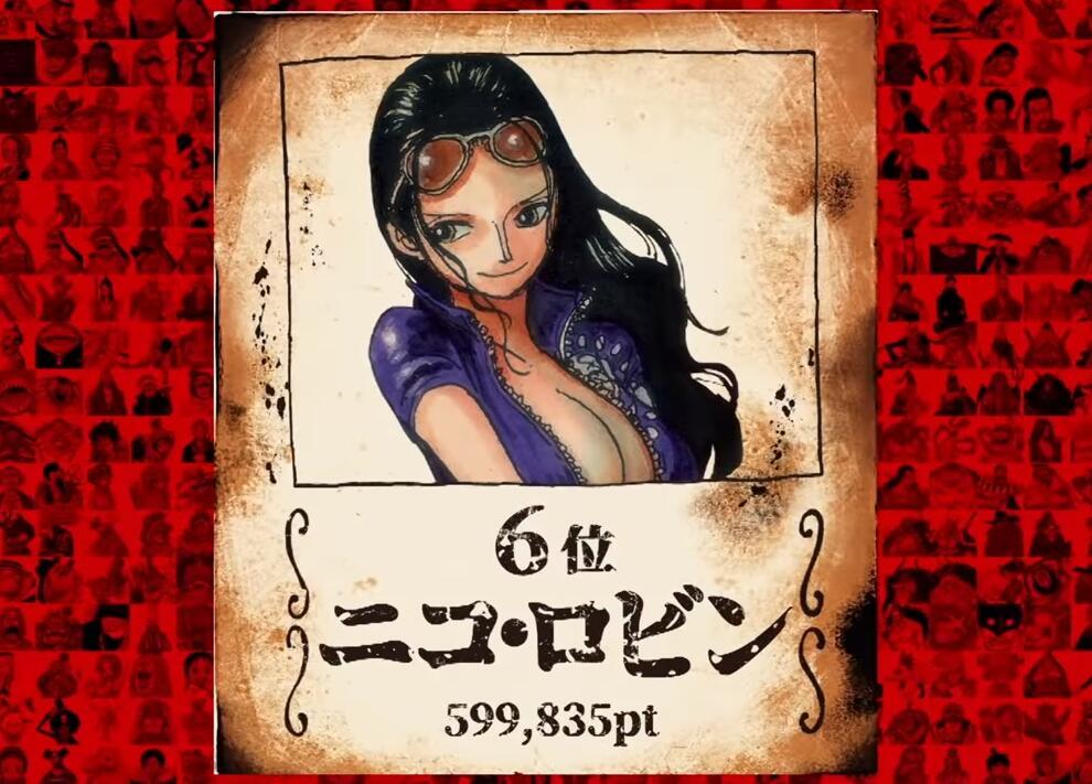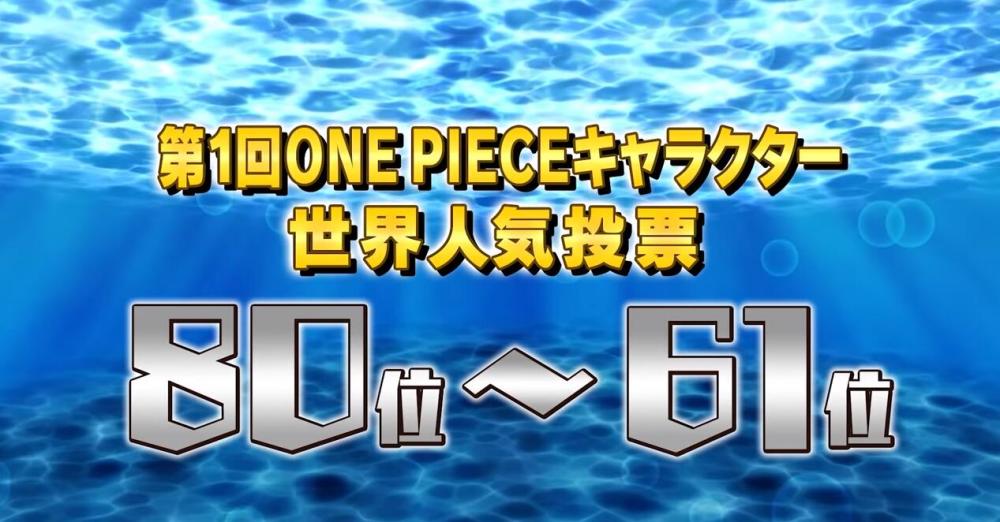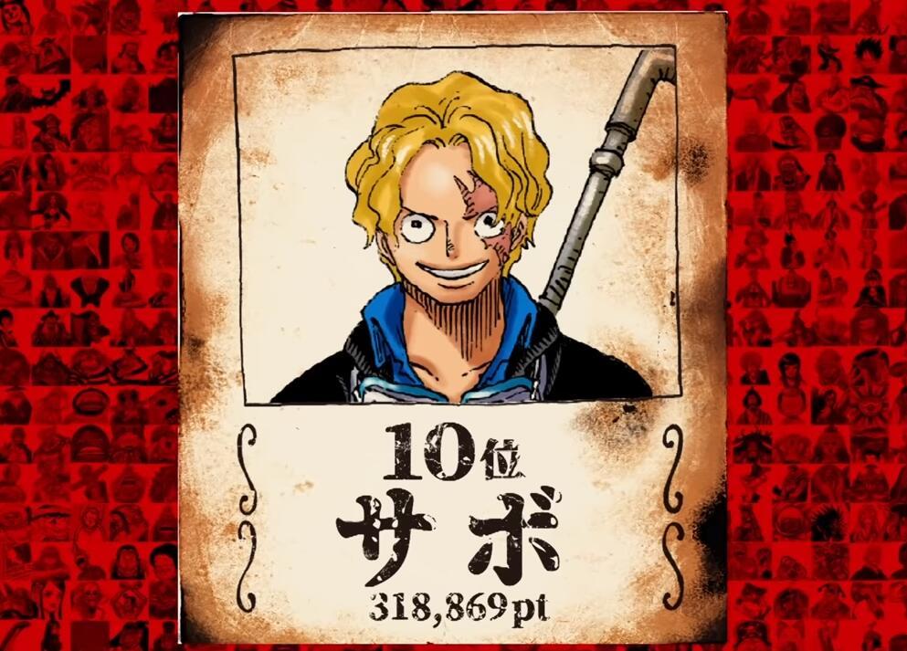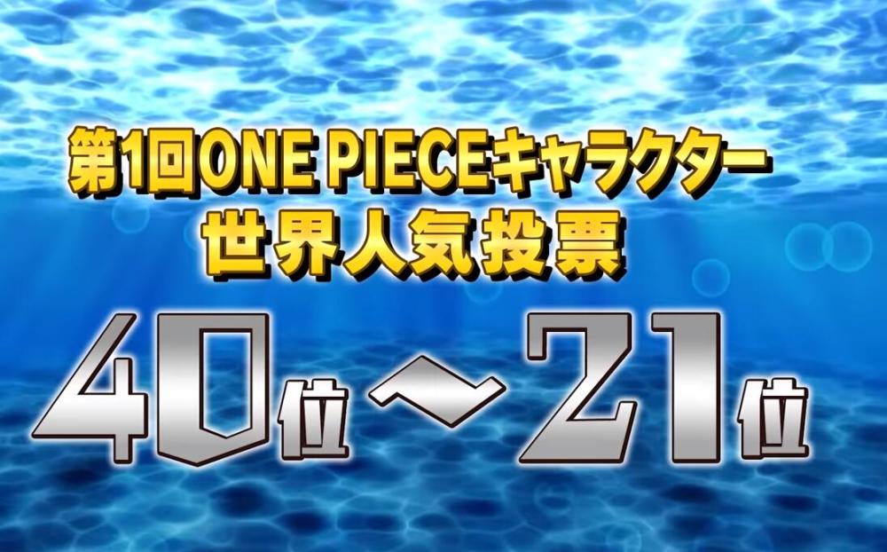 第20名唐吉坷德-多弗朗明哥,得票数96402;第19马尔科,得票数98431;第18甚平,得票数102354;第17老沙,得票数109837;第16名乔巴,得票数116364;第15乌索布,得票数131090;第14卡塔库栗,得票数152070;第13唐吉坷德-罗西南迪(柯拉松),得票数157167;第12香克斯,得票数171610;第11大和,得票数259738。