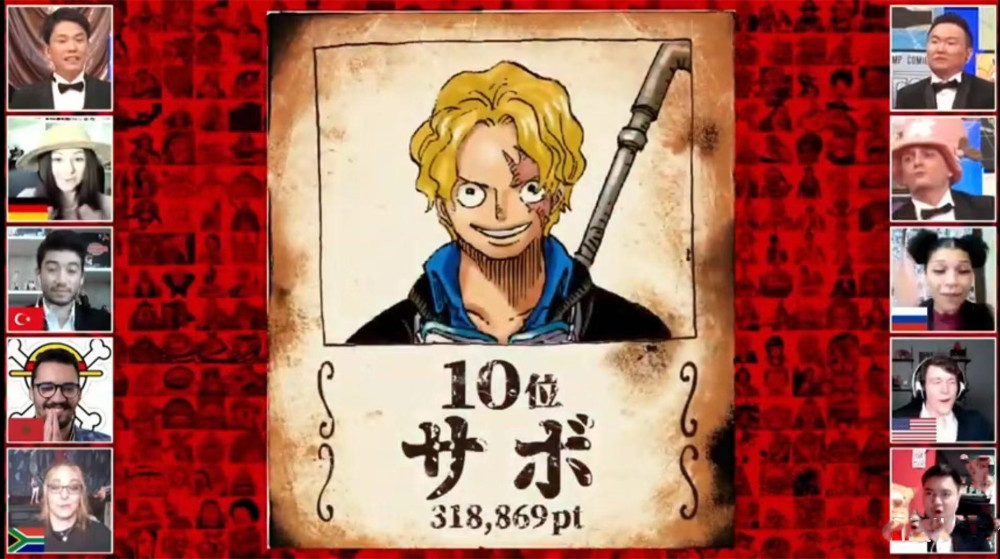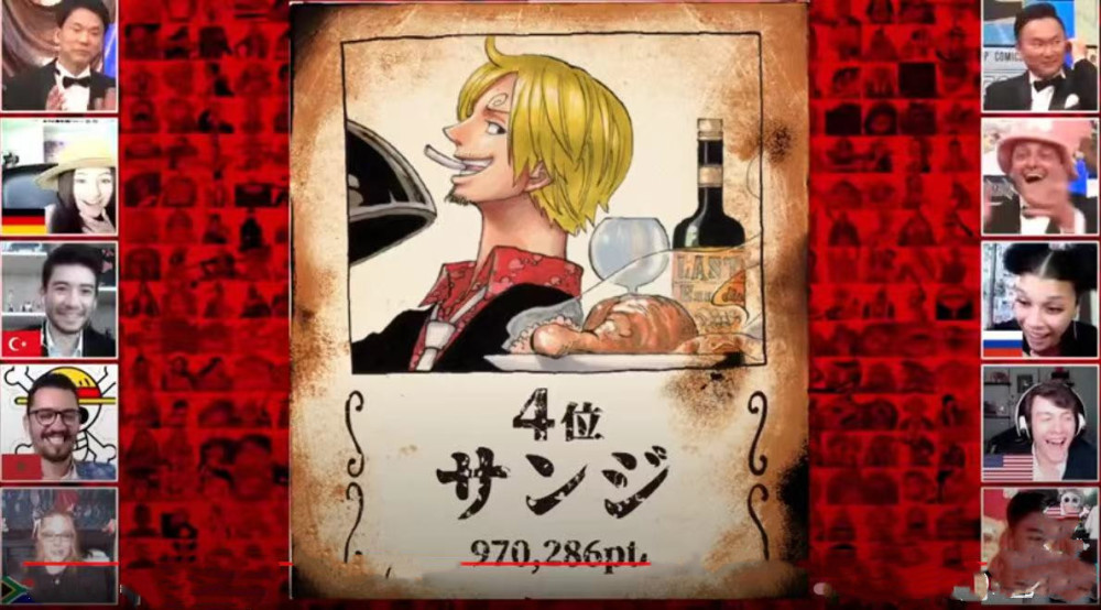 接下来的几个排名基本上都可以猜到了,因为真正的主角还没出场。排名第四的角色就是山治,虽说山治是一个“好色”的厨子,但是山治的人气确实没低过。正直、善良、从不对女人动手都是他的优点,关键是还做得一手好饭,试问这样的厨子谁不喜欢呢?