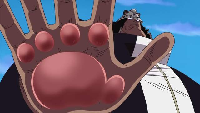 那种看起来强的给弱者或强者吃了都能变强,只是幅度不同,有些看不出什么门道的果实就真的需要开发和脑洞了,七武海大熊,刚登场时候他说他的果实能力是肉球果实,草帽团听了都全体懵了。一出手才知道他这能力竟然如此恐怖,穿透性攻击隔山打牛,压缩空气制造超级炸弹,能瞬移,号称手掌能摊开一切,甚至还能转移伤害,把路飞的伤痛和疲劳都转嫁到索隆身上。他这些诡异的能力,对手不了解的前提下一定会吃大亏的。