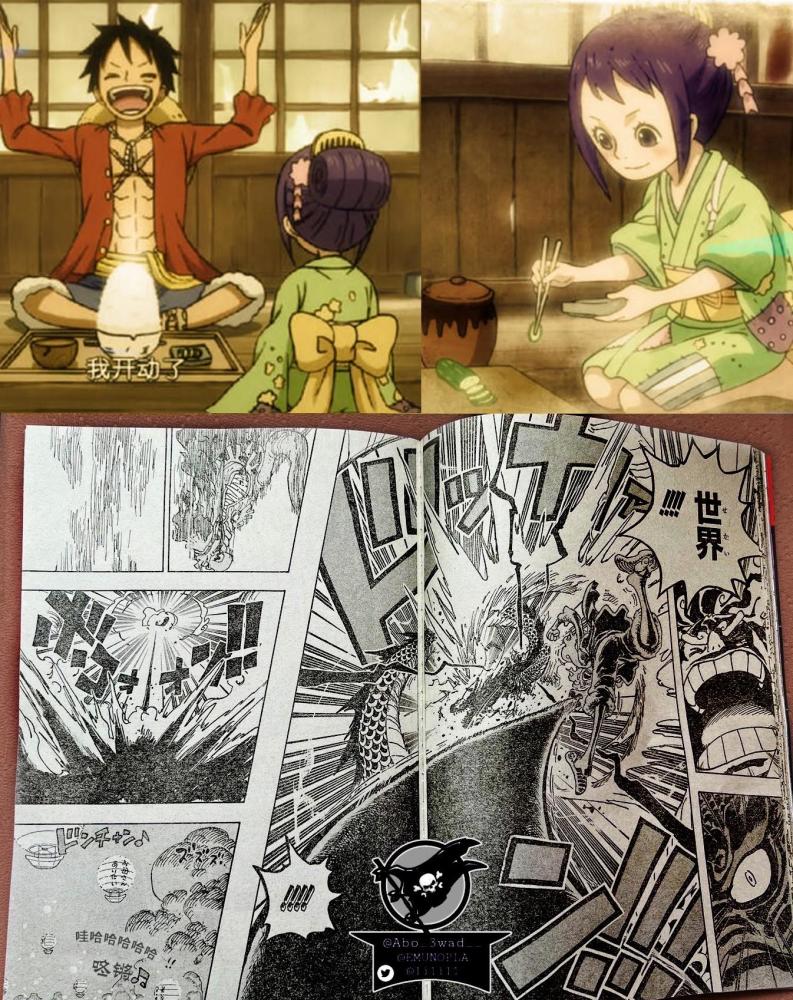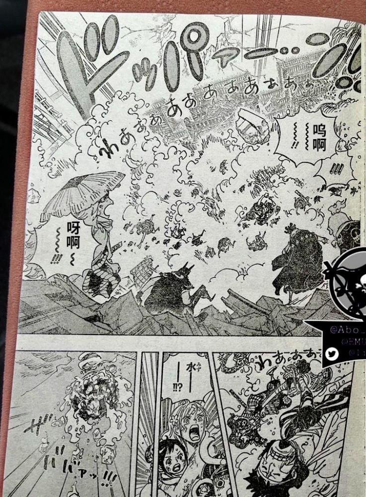 跟明哥一样的同款天上掉落,一样的大跨页。加上回忆杀,上一话的感情铺垫,凯多跟烬的对话.......这些加在一起想都不用想凯老师肯定是败了,继续仰卧起坐的可能性为零。