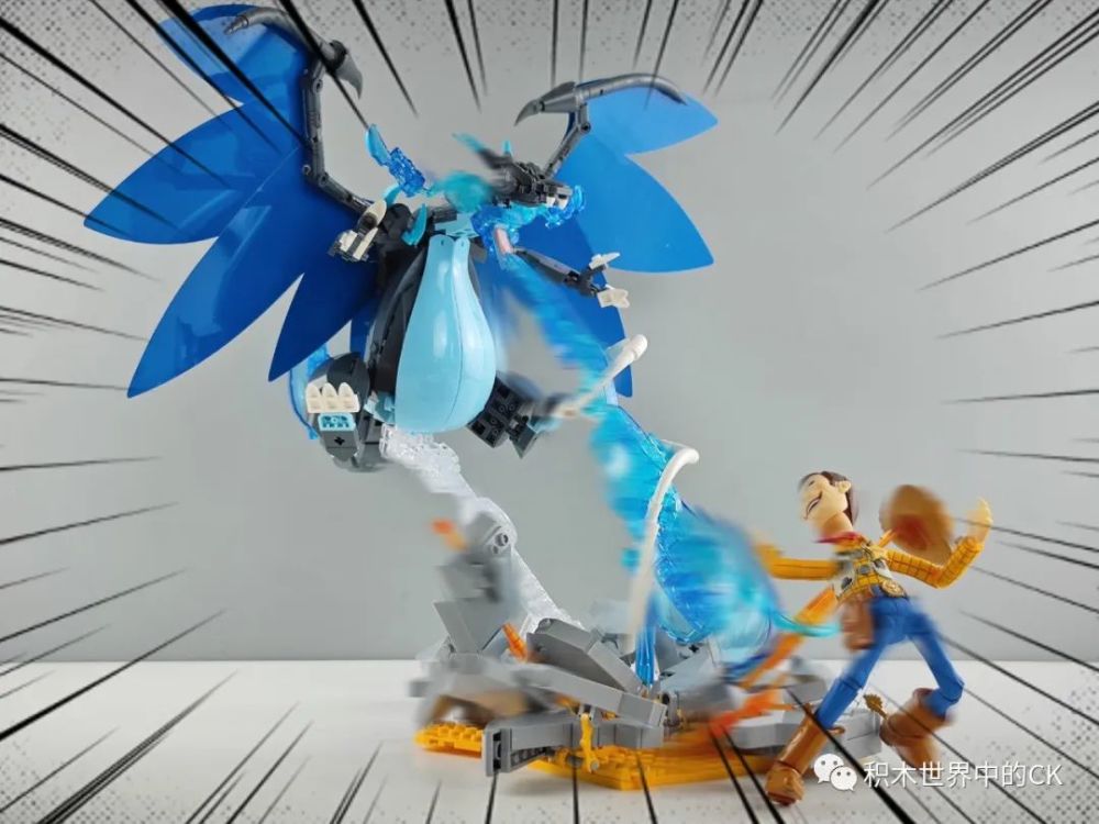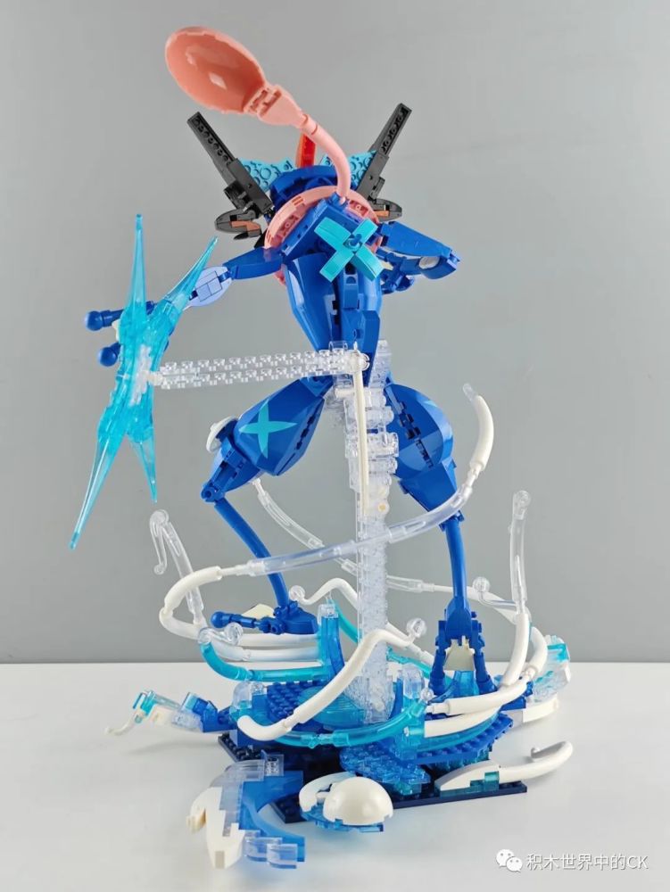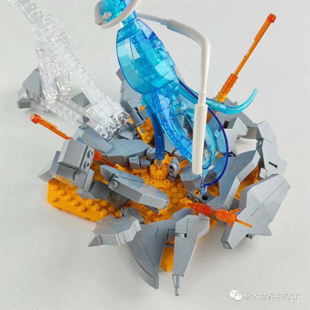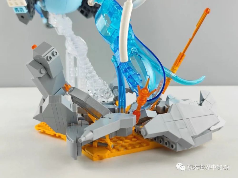 新款的造型设计偏向“带地台雕像”的形式,令成品从可把玩的定位上增加了“大摆件”的卖点。地台与特效的设计都十分形象,同时也是积木产品中甚为罕见的。