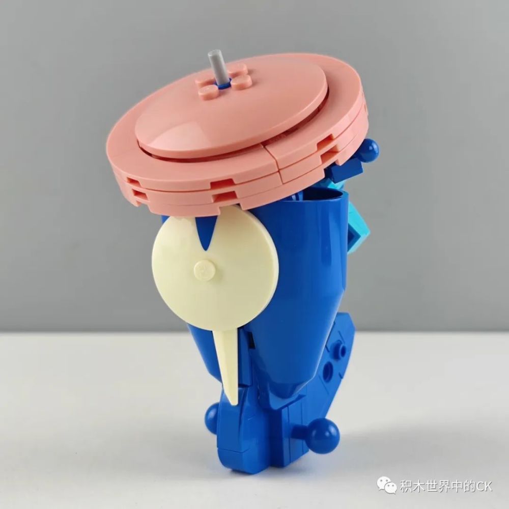 肚子这个件用得很巧妙,也同时做了限位!不过上方作为连接的夹子件却不够稳固,不小心错误用力的话就会松开。