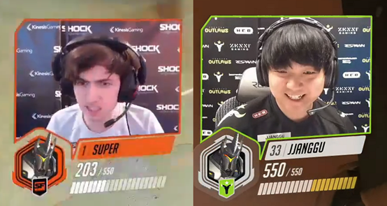本赛季全面升级了比赛直播的节目包装,增加更多的选手镜头是其中重要的环节之一,联赛观众们能够通过小窗口看到阔别已久的选手们在比赛中的第一反应。除了Leave的“吃播”镜头,在本赛季揭幕周旧金山震动队与休斯顿神枪手队的第一张地图里,神枪手队坦克选手JJANGGU一记重锤击溃震动队阵型,super瞪直双眼惊呼的镜头令人难忘。还有个精彩选手镜头同样来自JJANGGU,只见他挥舞大锤杀向敌阵,从小窗口里我们都能感受到令人胆寒的杀气,面对杀红了眼的JJANGGU,难怪能让super也惊叹三分。