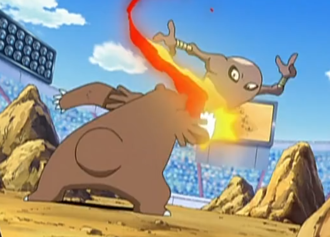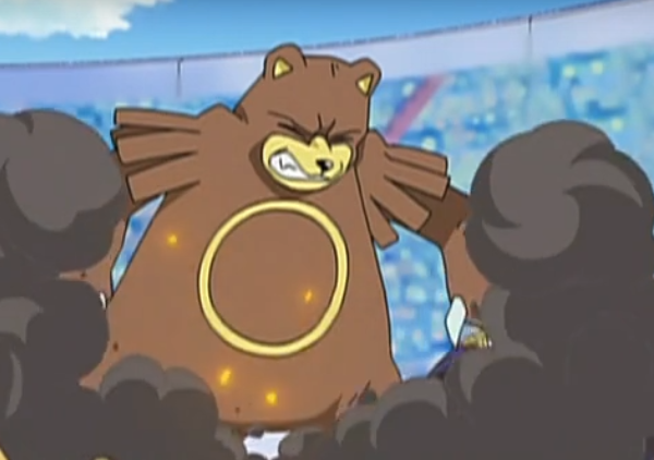 随后阿驯派出能够克制鸭嘴炎兽的帝王拿波,并且成功用加农水炮打中了鸭嘴炎兽,本来一位在撒菱的限制下真司不会替换,谁知真司还是替换了鸭嘴炎兽并派出了圈圈熊,圈圈熊上场随即受到了撒菱的伤害,阿驯也见势收回了帝王拿波。