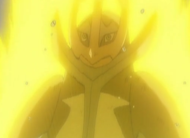 最后阿驯再度派出帝王拿波,帝王拿波开场弹回了圈圈熊的真气弹将其反弹回圈圈熊身上(这都不倒吗),真司随即收回了圈圈熊,派出了能克制帝王拿波的电击魔兽,开场依然受到撒菱的伤害,但因为属性克制,电击魔兽很快用电系招式重创了帝王拿波,帝王拿波关键时刻触发特性激流,但使用的加农水炮被电击魔兽的守住挡住(太绝望了),随后电击魔兽用打雷打败了帝王拿波,帝王拿波直接是站着失去了战斗能力。