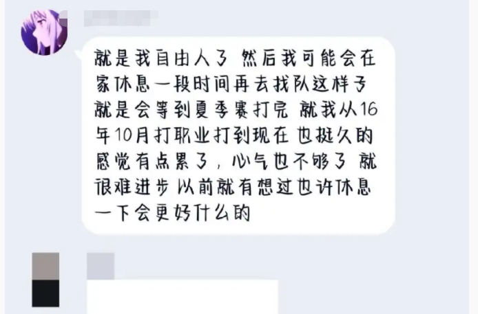 很多网友在粉丝群里面,也开始询问了起来,New亲自出来回应,大概的意思就是;夏季赛暂时不打了,因为没有心气了,自己从16年开始打职业到现在,也挺久的了,休息一下或许会更好。但这对于new来讲,几乎是没有什么希望了。这一次的休息,可能会让他直接告别LPL的赛场。