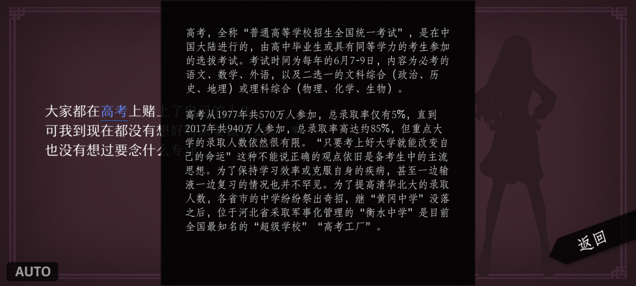 作为一款国产游戏,《WILL:美好世界》的文字十分亲切,并不会有日式AVG存在的文化隔阂问题,翻译腔和日式轻小说的腔调都在本作中很少出现。像TIPS“高考”就完全是我国高考的解释,对话中有邓丽君的歌,还有担心飞机掉落最先考虑保险买房的行文......