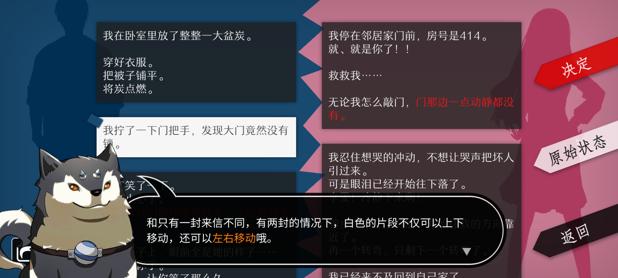 既然是AVG游戏,那剧情当然是最重要的一项评价标准。《WILL:美好世界》中,玩家的主要视角是一个扎着双麻花辫穿着旗袍的可爱妹子“辞”,她来到了陌生的世界,作为“神明”处理人类(其实还有喵喵汪汪)世界的来信。而这些信的部分顺序可以被神明改变,从而改变现实世界发生的事实这种堪比夜神月的能力——其他人做得到吗?