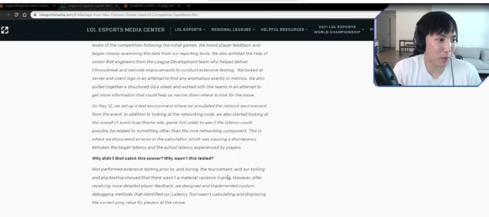 也就是说这条关键信息是拳头在事发之后才补上去的,属于是亡羊补牢行为,这就值得玩味了,因为这点已经足以说明拳头的确有在撒谎。听闻此事的官方又开始为此辩解说是工作人员的疏忽,并为此专门道歉,但嗅到不寻常气味的水友们已经开始深度挖掘。而从事IT行业的水友则发现,拳头官方所说的“22ms只是显示,实际依然是35”的说法,其实非常奇怪,IT水友发声“无论是调节服务器的延迟还是调节个人的延迟其实都非常简单”