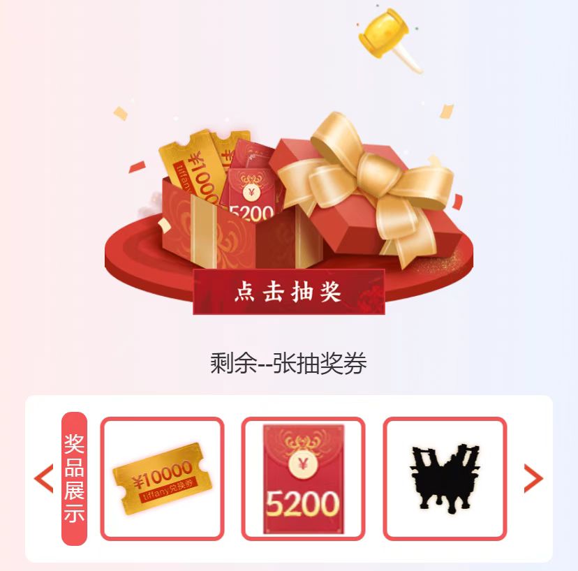 活动期间,在任务中心完成相关任务可兑换抽奖券,赢取万元Tiffany兑换券等奖品!