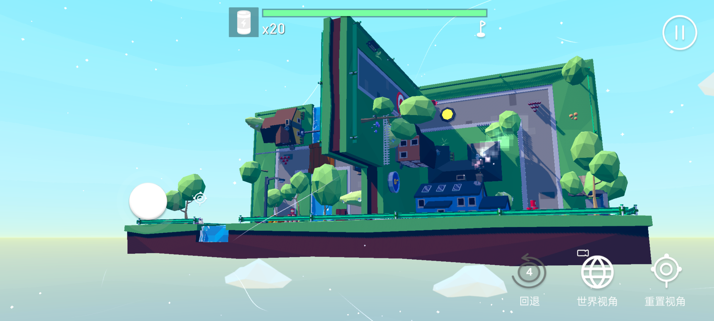 游戏设计极其巧妙的一点就在于“切换视角”,玩家既可以切换上帝视角观察箱庭里的小猫猫和终点的位置,又可以切换角色视角便于进行操作。在切换视角的过程中,既能够感受到视角颠覆带来的奇妙体验,又能自行规划一番“牛顿累了”的反重力路线。