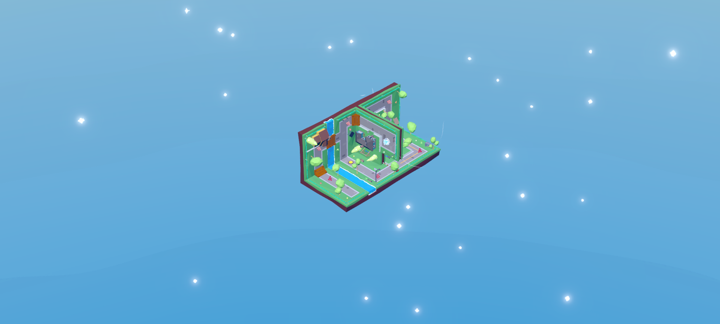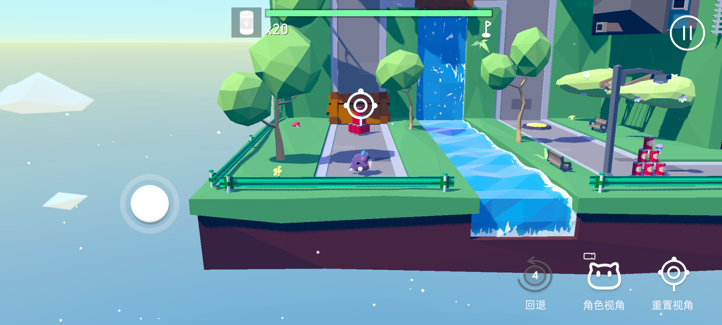进入游戏,展现的是箱庭式的建筑,这种充满了空间立体感又带点热带雨林风的设计有着简洁又不失鲜艳的美感。