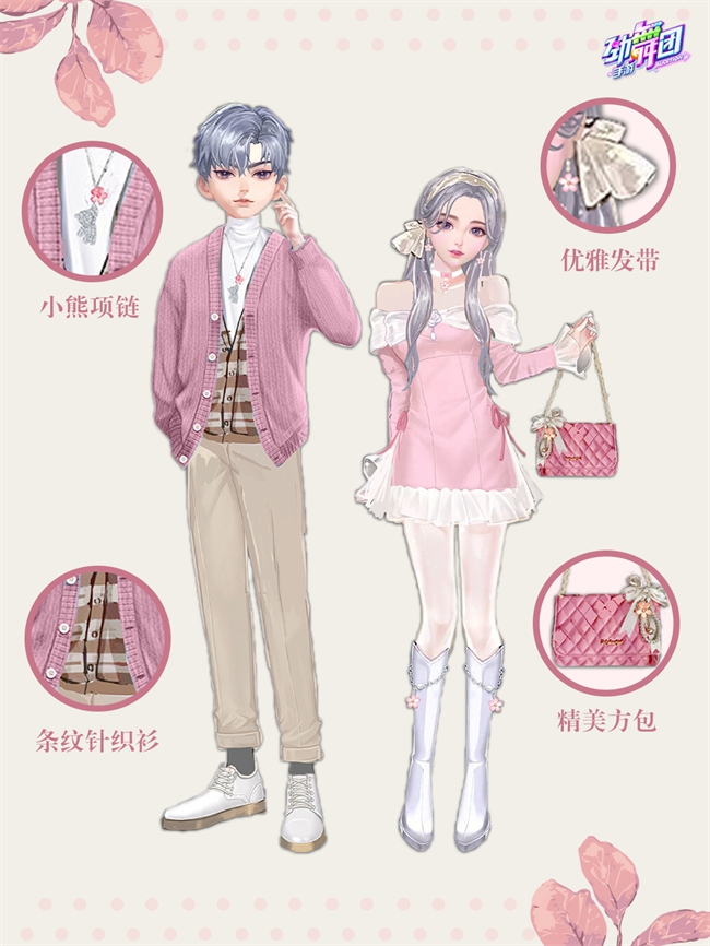 春日盛景当有桃花盛开,染上一抹娇嫩的粉色,绘出春天的别样风景。本期有粉嫩优雅的桃花小哥/桃花小妹,带你感受春日中的那一抹粉色美景。服饰桃花小妹为一袭粉色露肩短裙,胸前缀有白色玫瑰与宝石,增添了几分高雅气质,再配上一双白色长筒靴,服饰整体甜美优雅,气质高贵,十分吸睛!