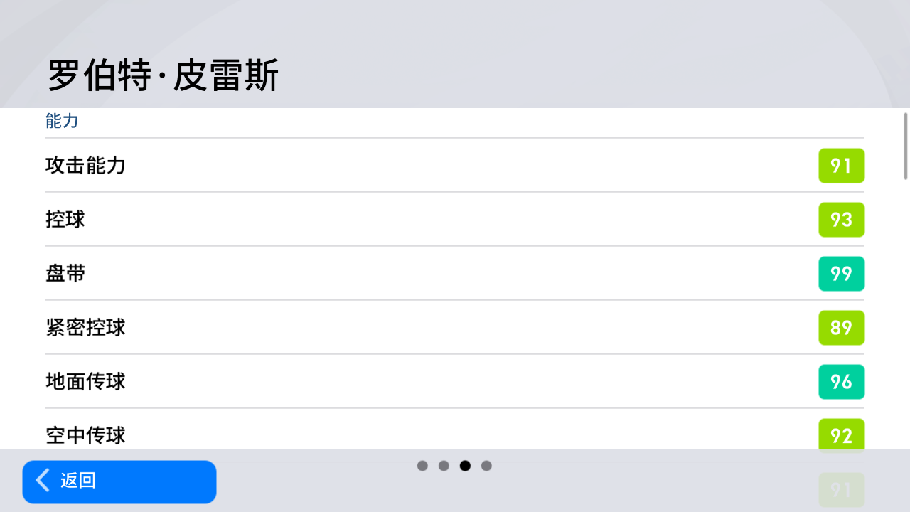 在具体属性方面,满级后的皮雷斯拥有99的惊人盘带值,人在球在。对方后卫在不犯规的前提下,要想在皮雷斯的脚下抢到球权可说是难于登天。同时皮雷斯还拥有着96的地面传球值,在进攻时能为锋线提供绝佳的支援保障。