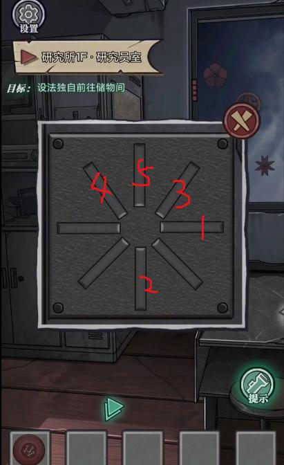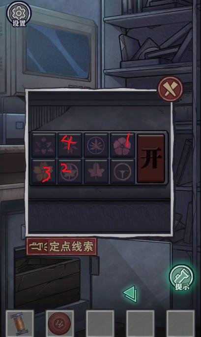 10、接着玩家可以返回后勤室调整机关,将机关调至如下,得到【小瓶子】,把小瓶子放入手术室。