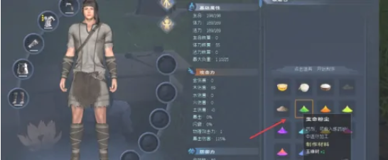 2.在碾磨台中,找到物品生命粉尘。