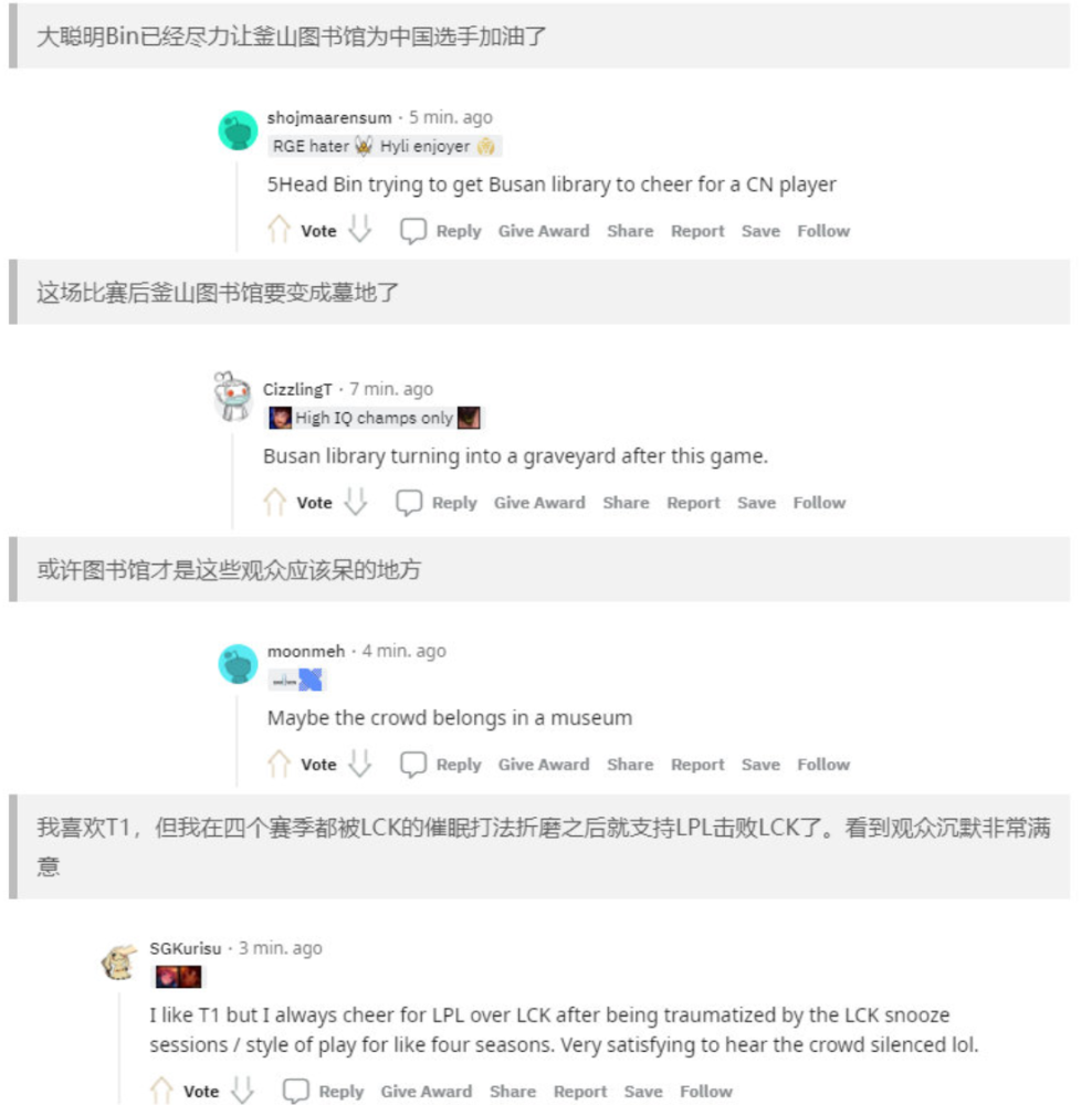 “或许图书馆才是这些观众应该待的地方”,国外有网友吐槽釜山现场观众的格局。在这次MSI,无论是LCK的观众还是导播,不管LPL跟谁对战,只要优势就沉默,只要劣势就鼓掌。属于是嫉妒使人面目全非了。要知道,国际大赛也在LPL主场举办过,但是LPL的观众从来不会做出这样格局小的事情,LCK的队伍和别的赛区队伍在中国比赛时,谁表现好,国内的玩家就给谁掌声,所有的大赛都是如此。
