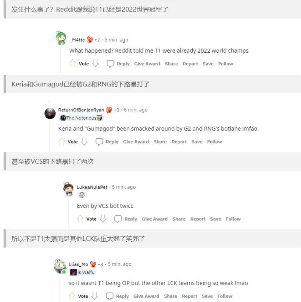 “不是说T1已经是2022世界冠军了吗”,国外一位网友这样调侃。在这次MSI,T1战队被认为是最大的夺冠热门战队,在国外的投票中,超过一半的网友认为T1会拿下这次MSI冠军。然而,T1无论是在对阵G2还是RNG的比赛中,都暴露了缺点。T1两场比赛都是前期取得优势,但是在中后期会被对手找到机会,最后正面团不敌对手。或许是LCK其他队伍给的压力太小了,导致T1在中后期的运营有些松懈。