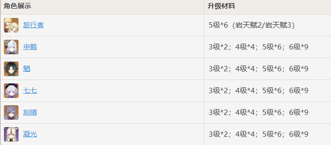 旅行者(岩)、申鹤、魈、七七、刻晴、凝光