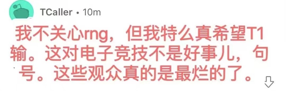 还有网友表示:我不关心RNG,但我真希望T1输。这对电子竞技不是好事,这些观众真的是最烂的了。