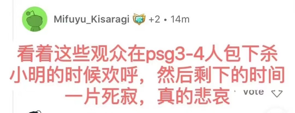 LPL的玩家们对于“图书馆”已经见怪不怪了,从MSI开赛起就这样。但是近几日的比赛让外网网友也坐不住了。有网友表示:看着这些观众在PSG包下击杀ming的时候欢呼,其他剩下的事件一片死寂,真是悲哀。